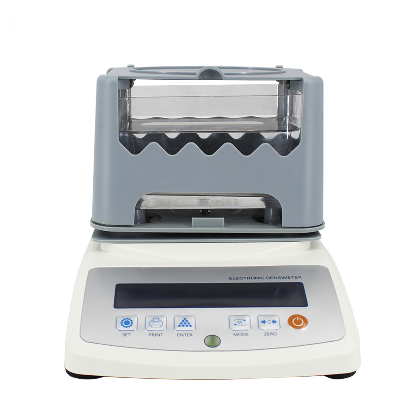 電子比重計是將現代微電子技術與阿基米德原理相結合而研發出來的新型比重測試儀器 此儀器改變了傳統密度測試的繁瑣操作,實現了不規則樣品的快速準確測量。能滿足現代產品生產及新材料研究過程中對樣品密度的精確測量要求